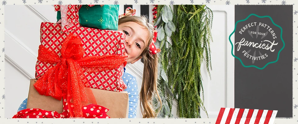 MJC handed us a box of the coziest, prettiest-patterned fabric and let us run wild! So we made giant, fabric-wrapped presents, outfitted the kitchen table with runners and chair bows, and filled the sets with their unique MJC style.