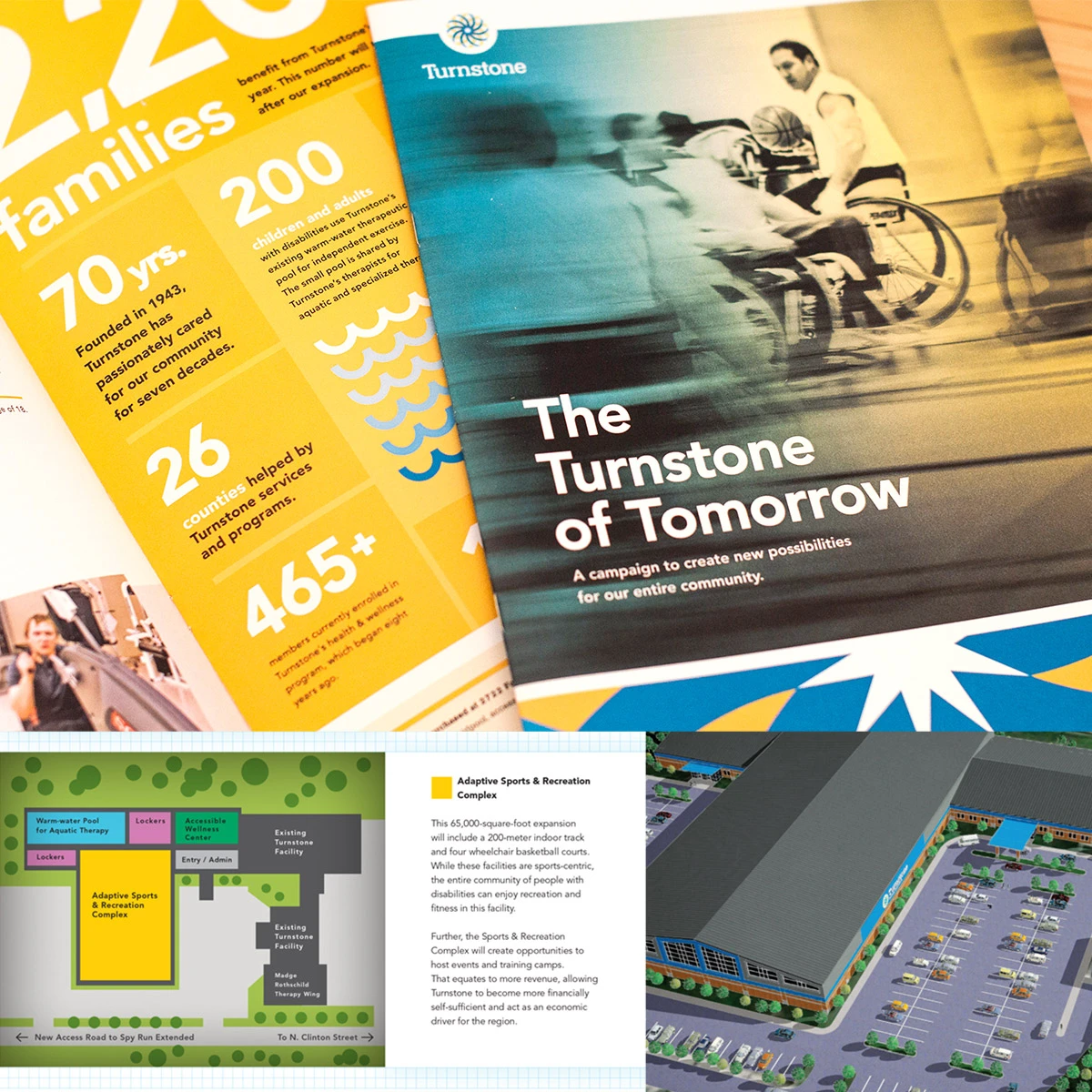 We were also fortunate to help Turnstone with their capital campaign to raise money for a new facility. In addition, we reimagined their athletic mascot logos that are now seen on jerseys for their 10+ competitive sports teams.