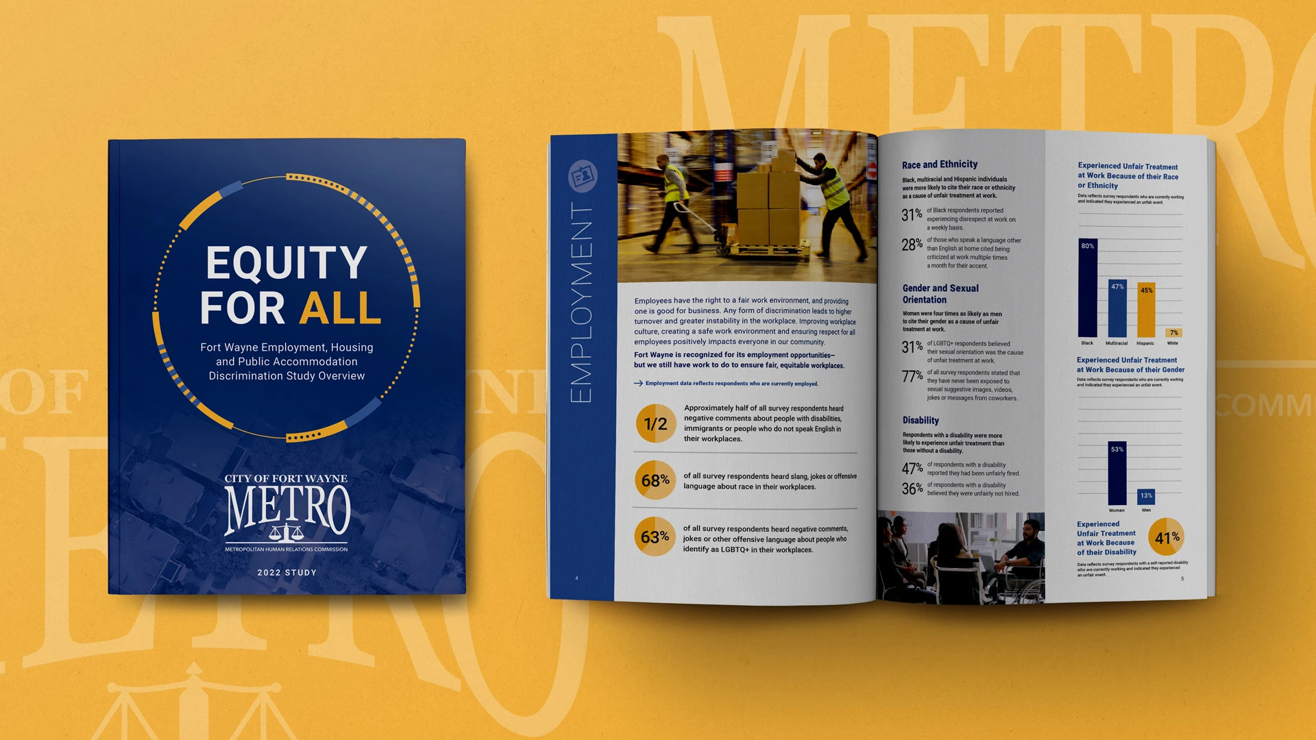 Fort Wayne Metro, our local civil rights agency, conducted the Equity for All: Fort Wayne Employment, Housing and Public Accommodation Discrimination Study to gain a deeper understanding of the unfair experiences many of our residents face in protected classes such as race, color, religion, sex (including gender identity, sexual orientation and pregnancy), national origin, age or disability.