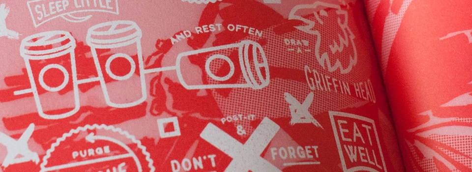 At the end of last year, I was invited to contribute to an incredible publication called Kern and Burn. In addition to 30 articles from design entrepreneurs, 12 illustrators were asked to contribute a full-page spread as it related to themes throughout the book. I was asked to provide something that relates to the phrase, “Make it up as you go.” My piece is a fictional hodge podge checklist of guidelines for exhibiting good design practices and staying fresh. Copy from the illustration: “In accordance with the guidelines of the S.W.A. (Society of Wandering Artisans) Feedback Retrieval Authority, if you find areas of this checklist to be irrelevant to your individual workload please create your own.”