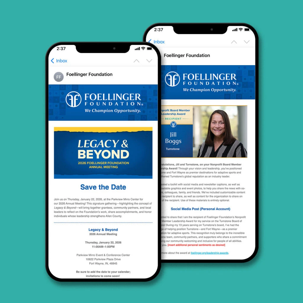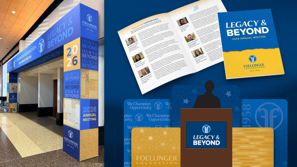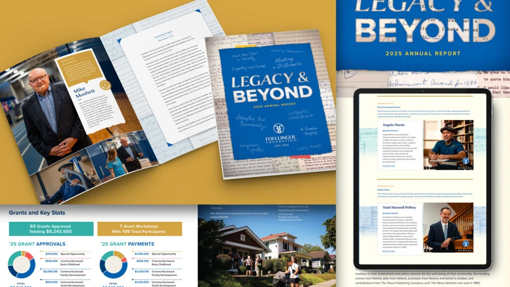 In 2026, Foellinger Foundation hosted its inaugural Annual Meeting. This signature gathering brought together grantees, community partners and local leaders to reflect on the Foundation’s work, share accomplishments and honor individuals whose leadership strengthens Allen County. We were proud to partner with the Foundation to bring the brand front and center while also letting the stories of Allen County leaders shine.