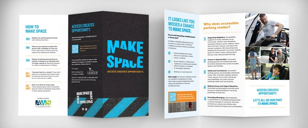 Make Space is a local initiative to provide education and advocacy for accessibility, and the first issue they’re tackling is accessible parking. One Lucky Guitar partnered with local advocates Cassie Beer and Kelly Shields to develop the name, tagline, visual identity and brochure for the Make Space initiative.