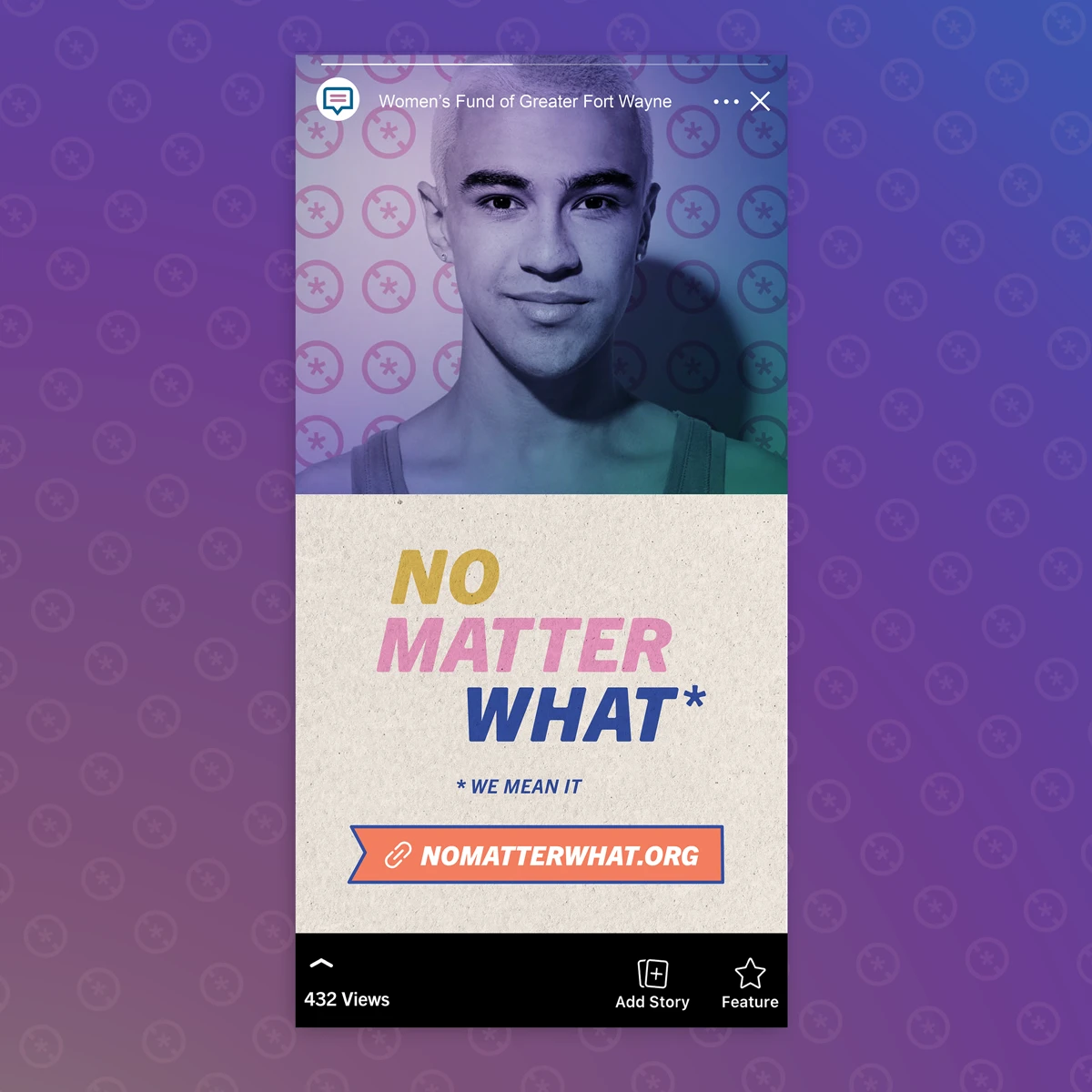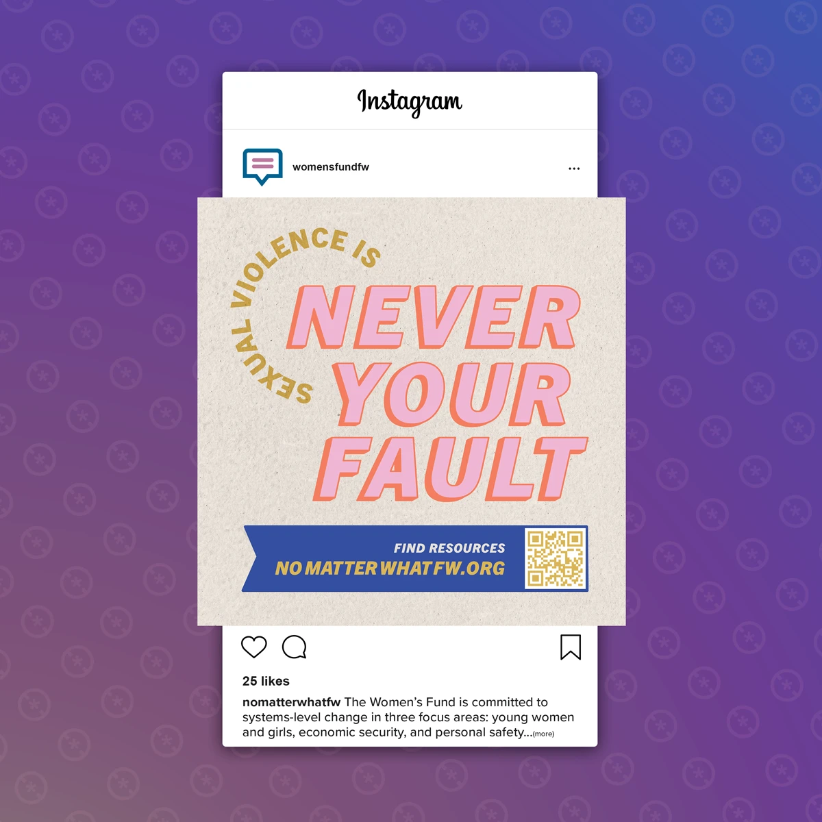 One Lucky Guitar partnered with the Women’s Fund to create the campaign platform—No Matter What—because no matter what, survivors are worthy of community support. This campaign’s initial phase of support was brought to life through a microsite, guiding sexual violence survivors to local resources available to help, along with basic education of what constitutes sexual violence. We also created QR code stickers, directing users to the microsite, to be placed in bathrooms of local businesses, libraries, fitness centers, restaurants and bars. So far, nearly 700 stickers have been placed in locations across Allen County.