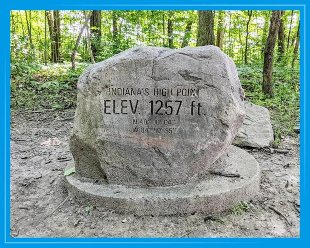 Wayne County, near the Ohio border, boasts the highest natural point in Indiana. Called Hoosier Hill, it sits 1,257 feet above sea level.