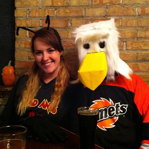 Hard to choose, but I was proud of my self-made Icy the Eagle costume, here pictured with a Mad Ant (my wife). Note, it was very hard to see outta that thing.
