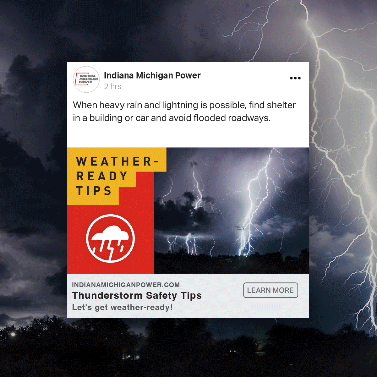 With changing seasons comes the possibility of severe weather. At Indiana Michigan Power, predicting, preparing for and preventing potential outages is an ongoing job. Knowing customers count on them for reliable service, I&M wanted to make a concentrated effort to communicate with the public about safety during storms in every season, and in real-time.