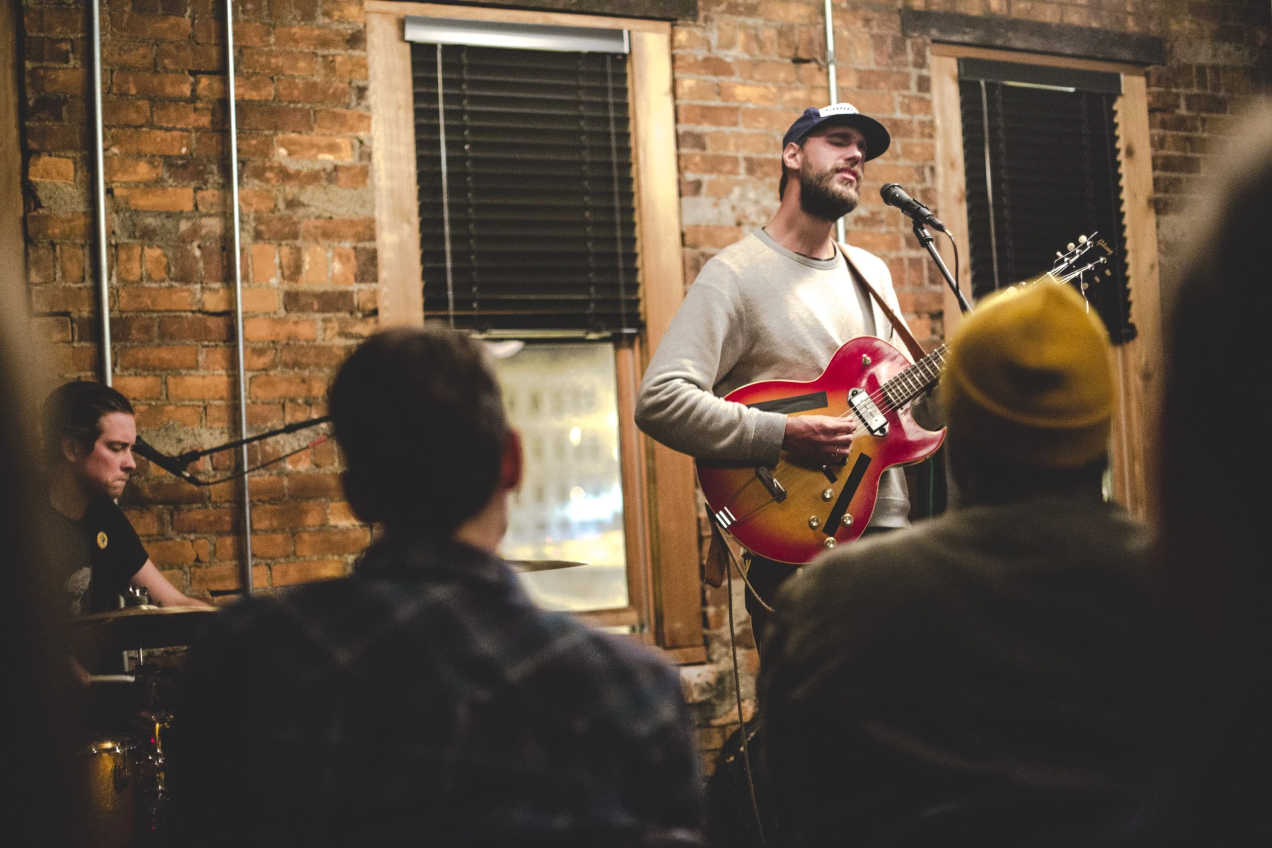 It became my mission to get RB and his amazing (and as it turns out, endlessly hilarious and endlessly amiable) band to The B-Side, and we finally succeeded, back in June of 2014. Nobody knew who this guy was, and we pretty much had to beg people to attend—with a $6 cover no less. I even got my parents to come to the show; they were bemused with the whole story, that this kid who I met when I was barely not a kid, was now in Fort Wayne, at One Lucky Guitar (a company named after his dad’s guitar) singing his own songs.