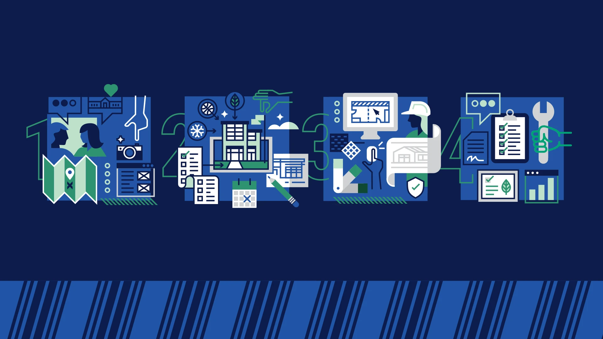 OLG partnered with the BCV leadership team to uncover the unique qualities that their clients and vendors value most. From this in depth discovery, we crafted a name—The BCV Method—and identity for the process. We also illustrated each of the four steps in the process to pair with talking points—branding the process uniquely to BCV.