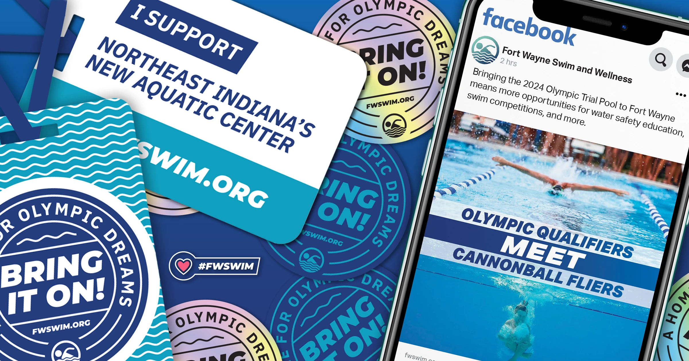 When Fort Wayne Swim & Wellness secured the rights to the 2024 USA Swimming Olympic Team Trials pool, One Lucky Guitar partnered with the organization to develop an awareness campaign that would build support and enthusiasm for the facility it would call home.